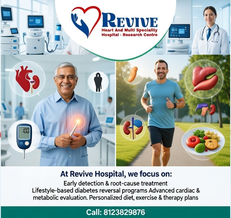At Revive Heart & Multi Specialty Hospital – Research Centre, we focus on early detection, root-cause treatment, and lifestyle-based healing.