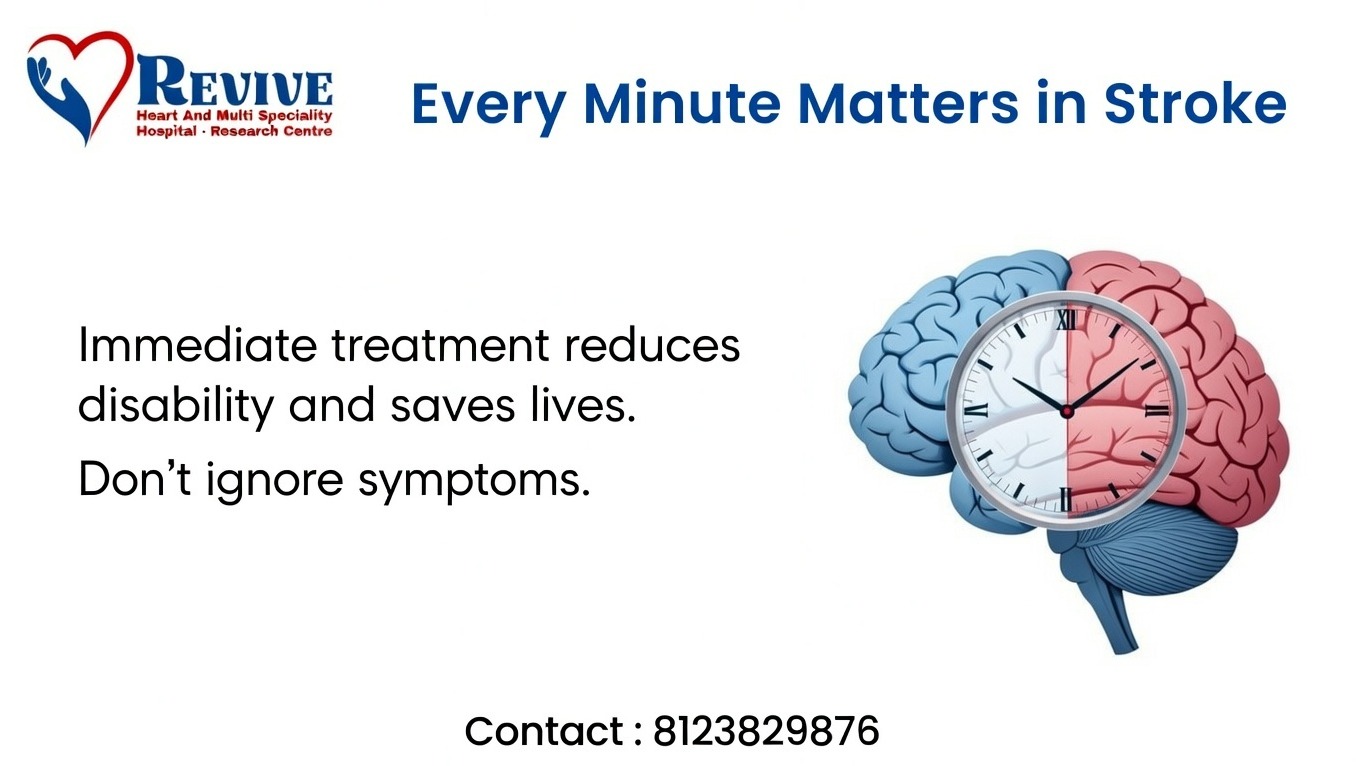 At Revive Heart & Multi Specialty Hospital, our team provides rapid diagnosis and advanced treatment to reduce disability and save lives. If you notice sudden weakness, speech difficulty, facial drooping, or vision problems, don’t delay—early treatment is critical.